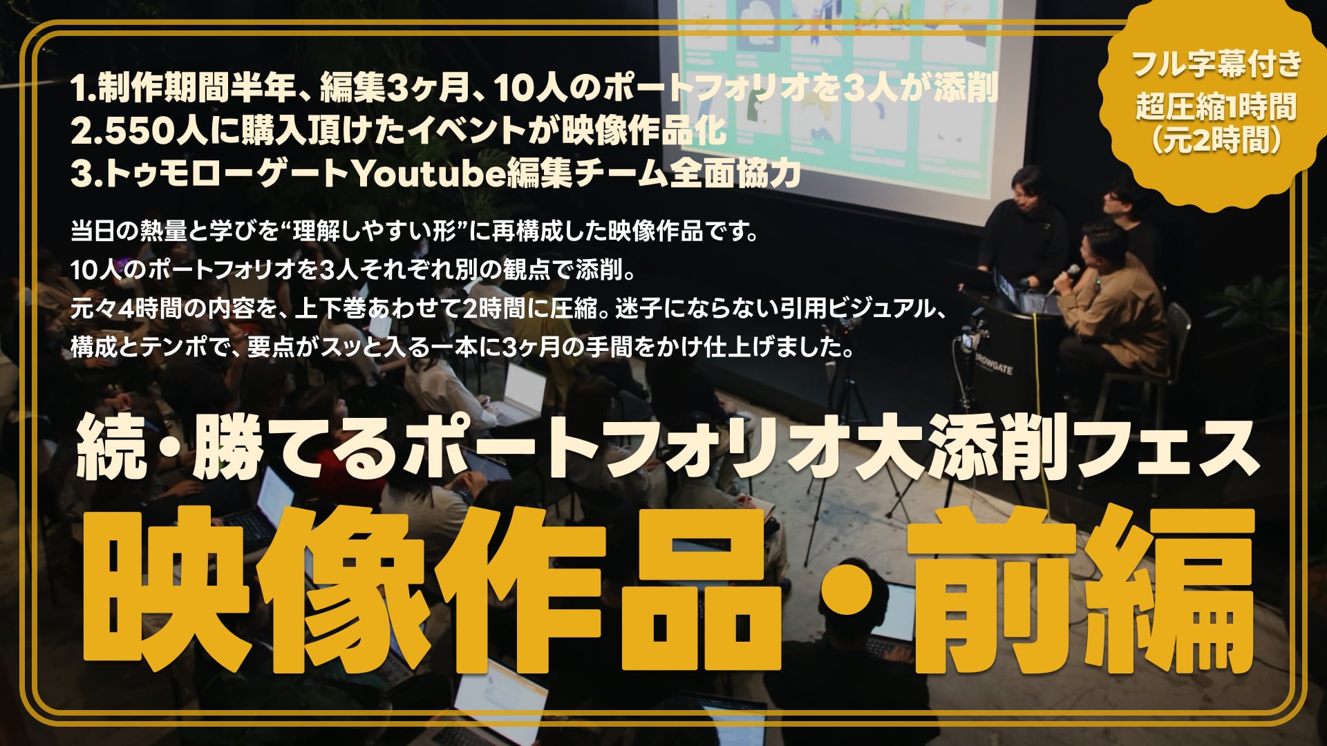 YouTubeのダイジェスト版では2名(落ちた人・受かった人)を紹介しましたが、実際のイベントでは10名のポートフォリオを添削しています。